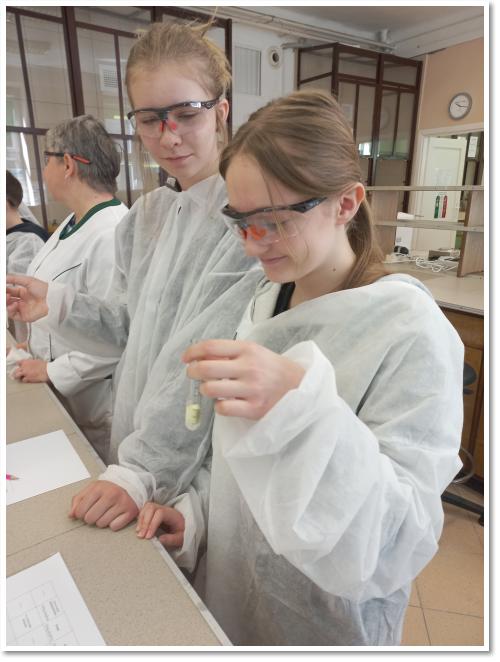 W dniu 17.04.20026 r. uczniowie klasy 7 wzięli udział w pasjonującej wyprawie naukowej na Wydział Chemii UMCS w Lublinie. Pierwsza część wizyty upłynęła pod znakiem eksperymentów - podczas warsztatów pt. "Chemiczne Biuro Śledcze" siódmoklasiści przeprowadzali efektowne, barwne reakcje oraz uczyli się wykrywać kationy metali w roztworach wodnych.